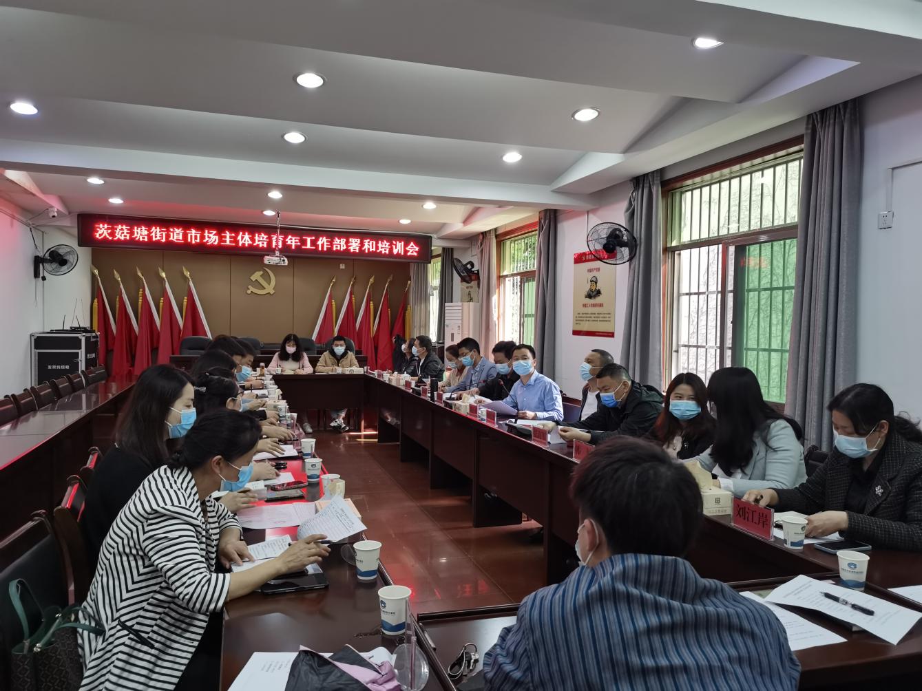 4月6日上午,茨菇塘街道召开"市场主体培育年"工作部署和培训会议。街道全体党政领导、社区书记参加会议,街道党工委书记刘石平主持会议,区市场监督管理局罗炽威一行到会指导工作。