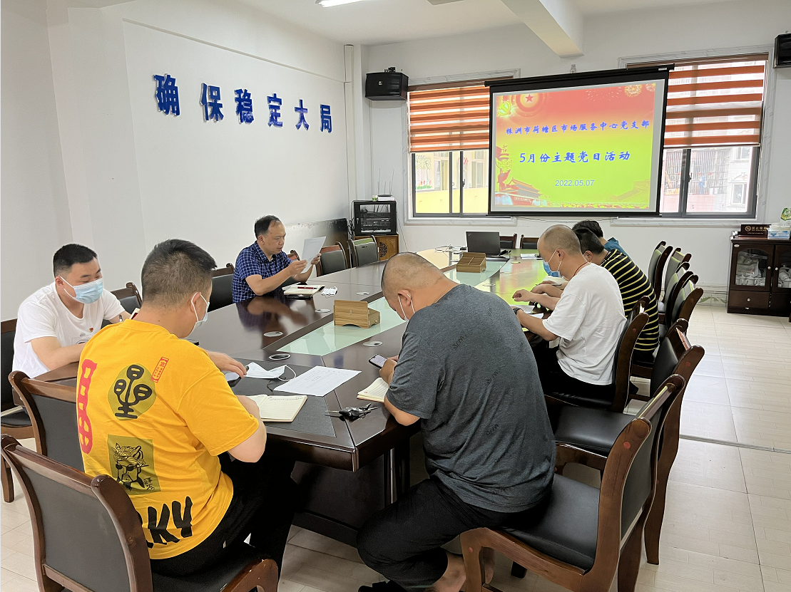 5月7日,荷塘区市场服务中心党支部在三楼会议室召开了5月份支部主题党日活动,活动由支部书记胡嵩主持,全体党员参加活动。