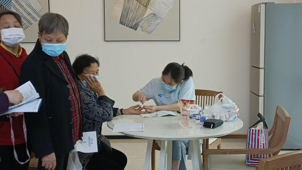 义诊包含了测血糖、量血压、B超、心电图和眼科检查等医疗服务,在现场医生就会根据体检结果为每位居民提出合理建议,且亿都随园还为每位体检者准备了八宝粥。