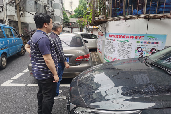 5月25日,区发改局副局长黎剑及相关工作人员督查荷塘区社区(村)创文健康知识宣传专栏建设情况。
