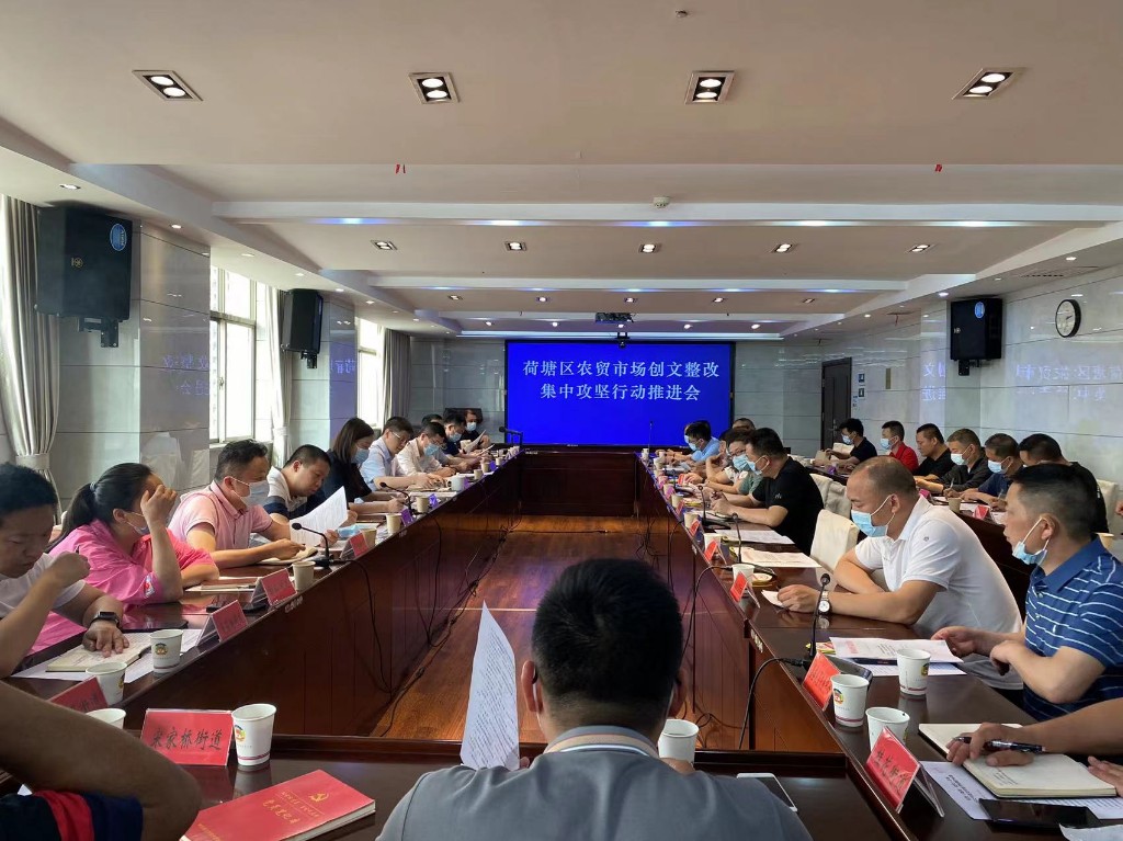 为进一步做好创文整改工作,6月6日下午,我区召开了农贸市场创文整改集中攻坚行动推进会。副区长陈佳敏、政务环境建设整改组副组长、区纪委常务副书记、监察委副主任汤灿、创文整改工作办公室副主任、区委宣传部副部长刘梦宸、区市场监管局局长汤思源、各市场监管所所长、区卫健局、荷塘消防大队、各镇(街道)分管农贸市场创文工作副职、各农贸市场主要负责人参加会议,会议由区商粮局局长李挺美主持。