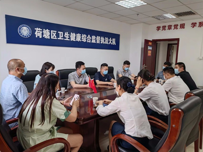 为积极响应区委区政府的号召,根据区卫健局的有关工作安排,6月9日下午,荷塘区卫健执法大队召集辖区十家各行业有代表性的公共场所经营单位负责人,参加“荷塘志愿”爱心商家招募动员会。执法大队副大队长谢谊主持会议,大队长刘珺参加此次动员会。