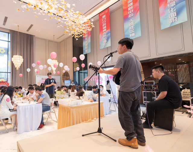 本次活动特意邀请了贰麻酒馆驻场乐队前来助阵。现场通过制作便当蛋糕、“蒙眼喂蛋糕”等游戏环节,为单身青年创造一个最佳的爱情孵化空间,为全区各行各业优秀单身职工朋友们创造一个相互认识、相互交流、发展友谊、收获爱情的平台。现场气氛活跃,并成功牵手3对。