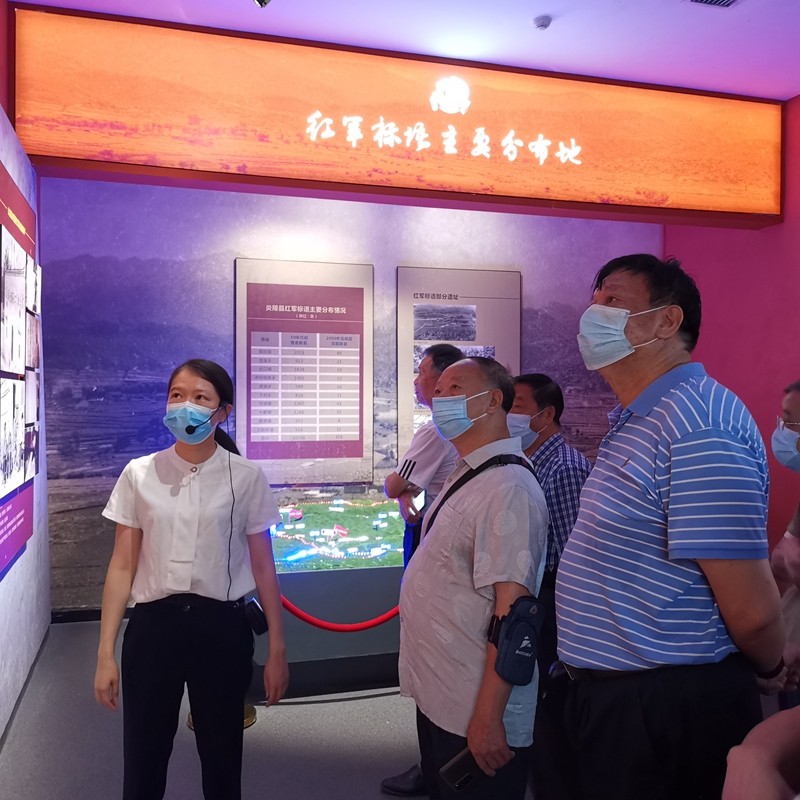 在炎陵县“红军标语博物馆”,老党员们对博物馆内现存红军标语细细揣摩,详细了解炎陵县及湘赣边界的革命斗争史,仔细听取红军标语背后的故事。