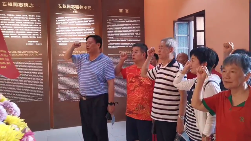 “我志愿加入中国共产党.......”在左权故居,胡开元书记带领全体退休老党员们面对党旗,举起右手,庄严宣誓,用铿锵有力的誓言表达对党的忠诚。