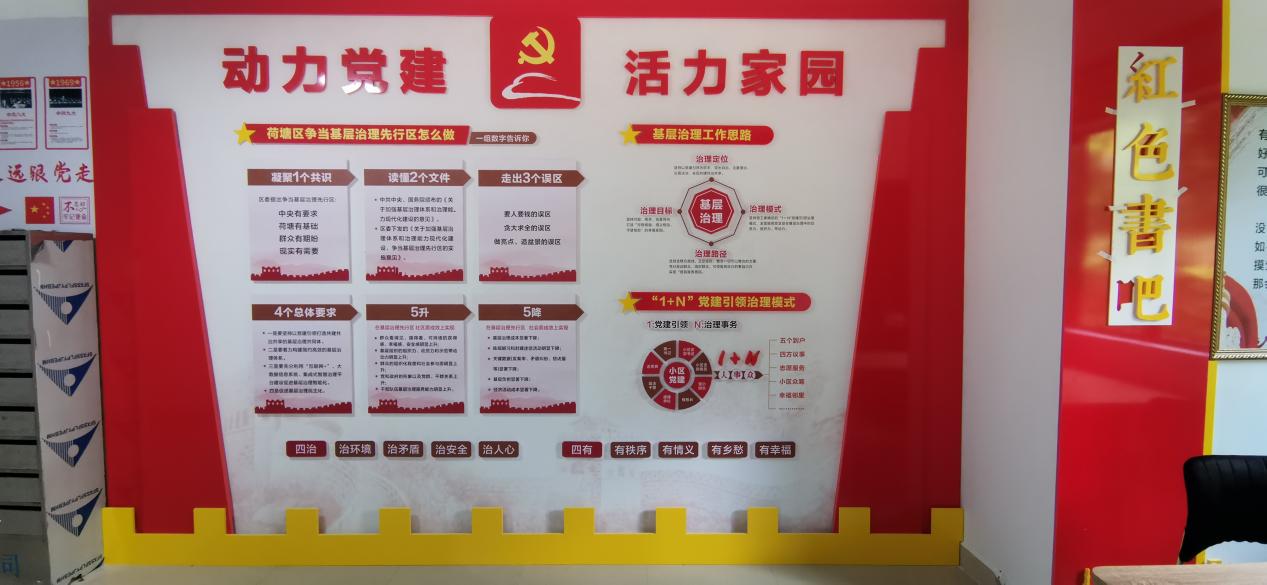 走进阵地内,党员活动室、调解工作室、多功能活动室、图书室等功能室一应俱全,制度、规划一目了然,能为小区党员群众提供党建业务及活动、社会综治、志愿服务、教育培训、协商议事、休闲娱乐、宣传展示等公共服务。曾经的公共区域成功改造成集小区党建、居民自治、居民议事、志愿服务于一体的多功能小区党支部活动中心,小区党员、居民有了活动、休闲好去处,打通了服务小区党员、群众"最后一米"。