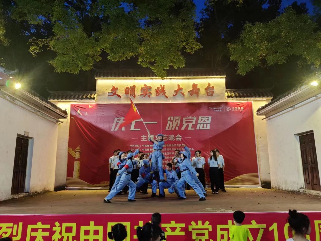 在袁家湾社区舞蹈队开场舞中,晚会正式开始。华润万家党支部选送的京剧《梨花颂》惊艳开嗓韵味十足,远东机械党支部儿童街舞《疯狂的机器人》忘我的表演,感染了在座每一位观众。蓝马党支部合唱《中国中国鲜红的太阳永不落》激起全场的爱国热情,将整场活动的气氛推向高潮……此外,还演出了花鼓戏、乐器独奏等10个精彩节目,并穿插了互动抢答环节,增进了大家的互动交流。