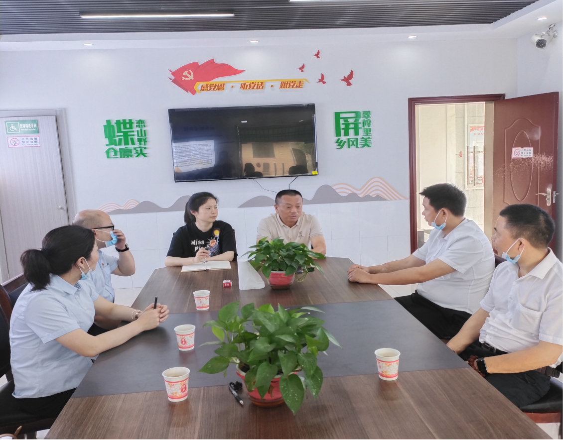 7月6日,邮储银行红旗路管理支行总经理李登高、副总经理何辉与随行人员帅延、刘笑雅一行赴仙庾镇蝶屏村就信用村准入、金融知识下乡、服务乡村、服务三农振兴农业凝聚乡村振工作开展了座谈会。
