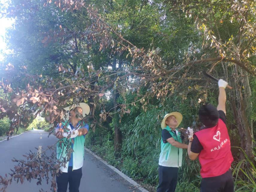 时值盛夏,草木生长茂盛,部分枝条经风、雨影响垂到路面,有的甚至占了道路的1/3,为村民和车辆的出行带来了严重的安全隐患。为了保障村民出行安全,在村党委的号召下,党员志愿者们行动了起来!志愿者们顶着高温,冒着酷暑,分工合作,男同志负责清理垂枝和长出路面的杂草和树枝,女同志搬离断枝和清扫路面。大家汗流浃背,衣衫尽湿,路过的村民纷纷点赞,有热心村民还自发为志愿者们送上西瓜解暑,感谢村干部将村民的安全放在心头,感谢党员志愿者们的辛苦付出。
