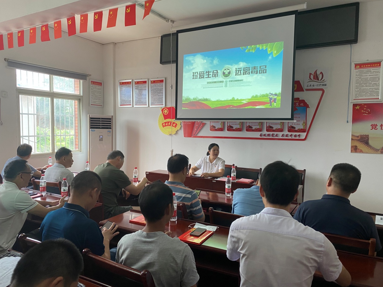 社区书记陆艳萍主要围绕"什么是毒品"、"什么是吸毒"、"吸毒的危害"、"如何防止吸毒"四个方面展开讲解,全方位的解说了传统毒品种类、新型毒品种类,以及毒品对个人、家庭、社会的危害:家庭中一旦出现了吸毒者,家便不成其为家,使家庭陷入经济破产、亲属离散、甚至家破人亡的困难境地。毒品活动也会加剧透发了各种违法犯罪活动,扰乱了社会治安,给社会安定带来巨大威胁,并号召两委班子及社区工作人员要树立正确的人生观、提高警惕、远离毒品。