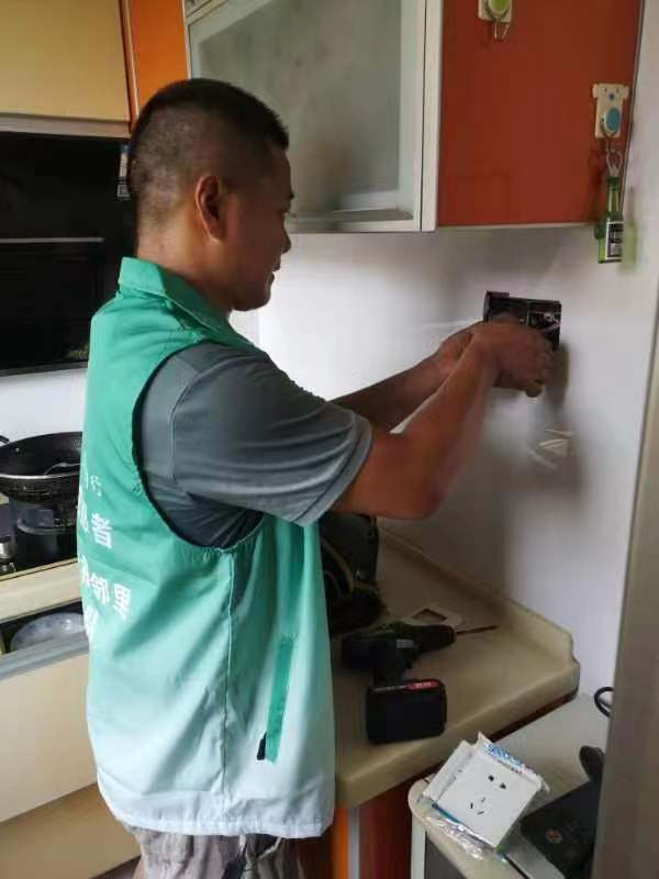 针对小区居民家需要维修家电的需求,桂花街道西子社区玫瑰名城党支部书记赵光辉7月29日在社区群内发布消息,小区志愿者可义务上门为居民进行水电维修便民服务,当天便收到求助信息,7月30日,志愿者带上工具箱,走进有需求的居民家中,义务为小区业主修电灯和开关水电,根据老师傅的经验,很快就找到了电灯故障所在,没多久就把电灯修好了,受到小区业主连连称赞。