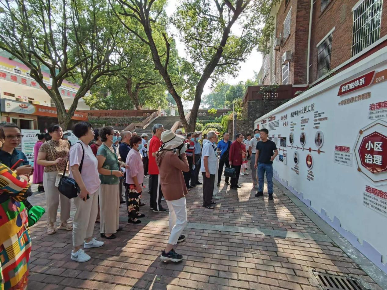 观摩现场,刘石平向观摩团重点推介了街道"楼栋长来当家"体系,六〇一社区书记详细讲解了六〇一社区发展史、基层治理的工作定位、工作思路和具体实践及党建引领志愿服务、周一矛调、小区众筹等小区治理亮点、特色。