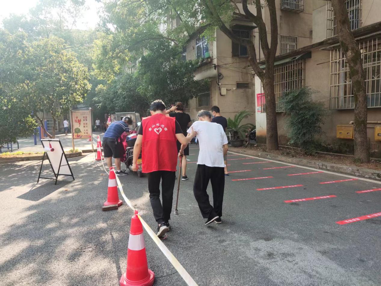 对于行动不便的居民群众,金山街道特意安排了工作人员作为志愿者帮助行动不便的群众进行核酸,同时收集相关人员信息,对接卫生服务中心工作人员进行上门核酸检测。