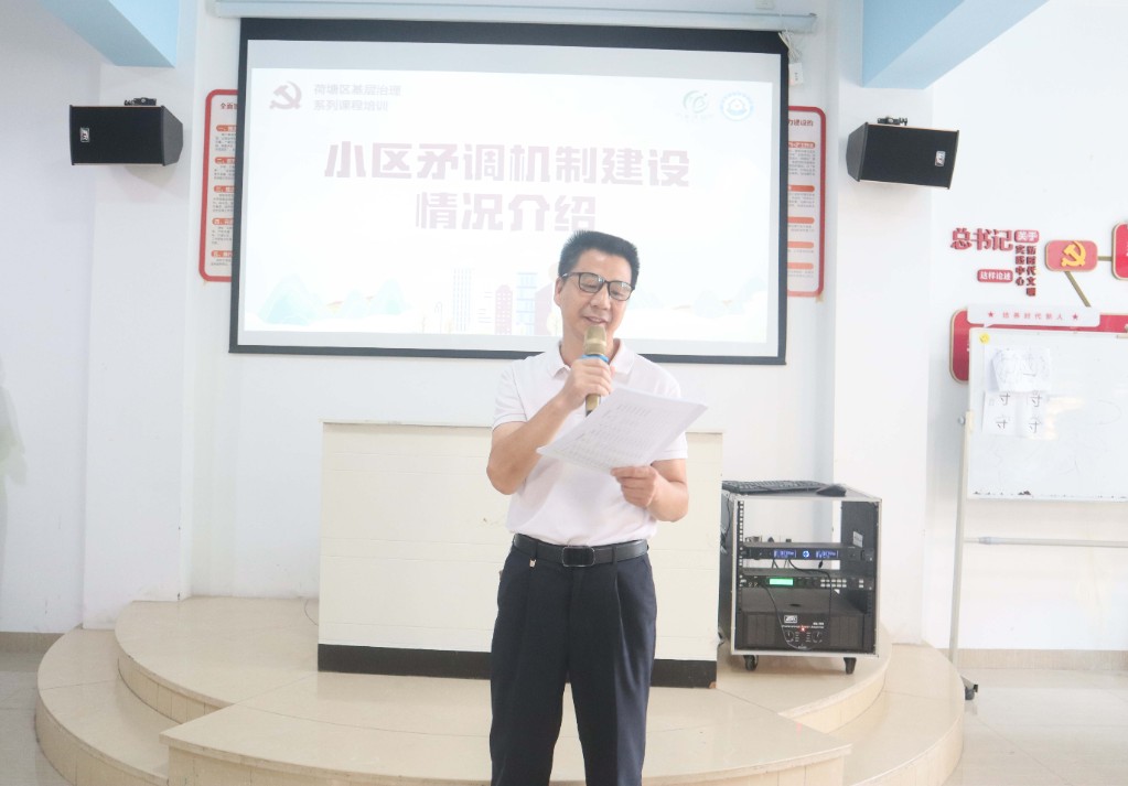 区委政法委三级调研员刘金耀详细介绍了全区社会矛盾纠纷“一站受理、多元联调”工作机制,对小区矛盾调解工作机制进行重点介绍,茨菇塘街道副主任张俊分享辖区小区矛盾调解经验。针对小区矛盾纠纷案例,小区党支部书记们分组进行热烈讨论,并派代表分享调解方法和技巧,区司法局副局长周璐、区社会矛盾纠纷联调中心综合调解室调解员戴兰英进行点评,与会领导嘉宾为评选出的优秀分享小组颁发纪念品。此次培训为荷塘区基层治理骨干人才队伍培训班小区党支部书记培训第二期,后续还将围绕“如何发挥党组织和党员的作用”“如何组织、开展四方议事”等主题开展系列培训。