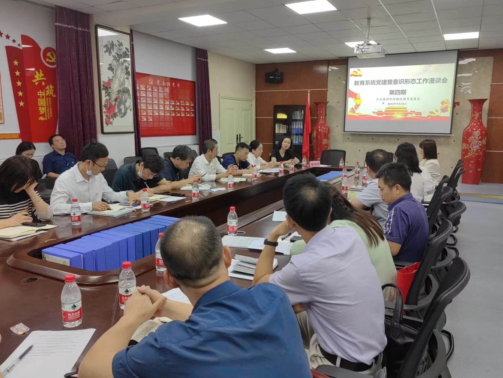 为加强新时代党组织建设工作,推动党员干部能力提升,近日,株洲市荷塘区教育局组织召开第四期教育系统党建工作漫谈会。区教育局党委副书记、副局长潘书巧主持会议并讲话。各基层党组织书记共计30余人参加会议。