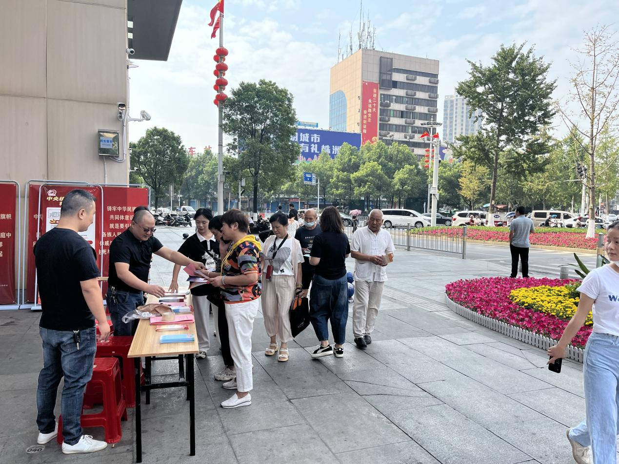 为深入开展民族团结进步宣传月活动,不断巩固和发展平等、团结、互助、和谐的社会主义民族关系,努力促进各民族大团结,使各民族像石榴籽一样紧紧抱在一起,铸牢中华民族共同体意识,2022年9月28日上午,荷塘区委统战部(区民宗局)联合金山街道、区商务粮食局、晏家湾社区、株洲银泰财富广场商业有限公司等单位开展集中宣传活动。