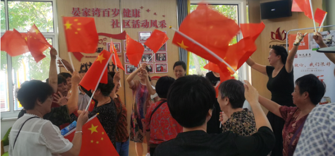 场外还有专业工作人员给居民们量血压等,为老年人提供健康咨询。最后,现场所有党员、居民们一起手举五星红旗,上台合唱《我和我的祖国》,唱到情深处,很多老党员不由得湿润了眼眶,歌唱祖国,感恩祖国。