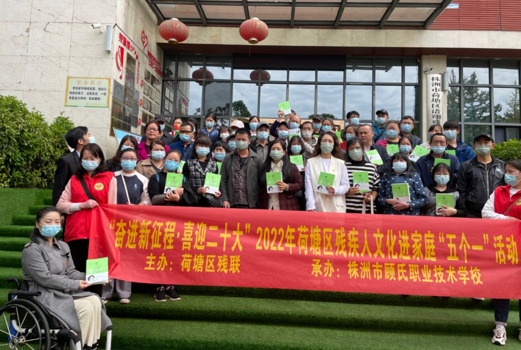 为进一步丰富和活跃荷塘区残疾人的文化生活,提升残疾人享有公共文化服务的水平,促进残疾人融合发展,10月10日一13日,荷塘区残联在喜迎二十大召开之际,组织开展“五个一”文化项目进残疾人家庭活动。旨在鼓励残疾人家庭树立信心,自强不息,感党恩,听党话,跟党走,感受到党和政府的温暖以及社会各界的关怀。