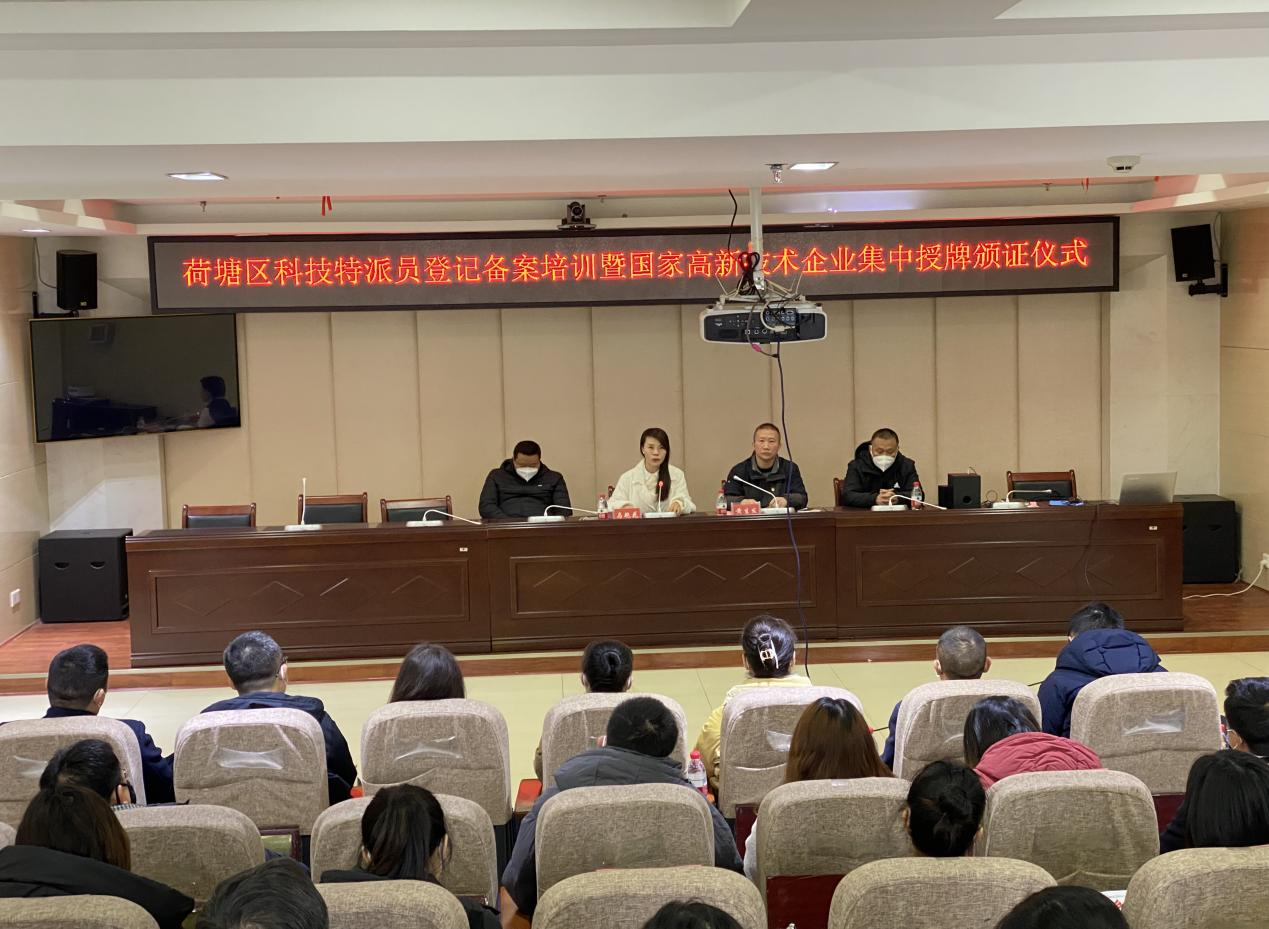 12月15日,荷塘区科工信局举办科技特派员登记备案培训暨国家高新技术企业集中授牌颁证仪式。区科技和工业信息化局局长马艳花出席,副局长黄生发主持,荷塘区62家企业代表参加活动。