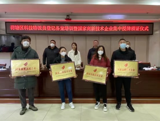 黄生发通报了荷塘区2022年各项考核指标、近年高企认定工作情况,宣贯了《科技部农村科技司关于开展科技特派员登记备案试点工作的通知》,介绍了科技特派员登记备案工作背景和总体要求。马艳花就更好促进2023年度科技方面工作提出要求,一是务必高度重视。企业主要负责人一定要树立科技是第一生产力观念。二是早计划早安排。一年之计在于春,结合政策与自身实际计划好科技投入和项目进度,充分享受政策红利。三是多部门共协作。科技工作涉及技术、生产、财务、统计等部门,要统筹内部协调,必要时可借助第三方机构。随后,马艳花、黄生发对2021年、2022年获得国家高新技术企业认定的62家企业进行了集中授牌颁证。