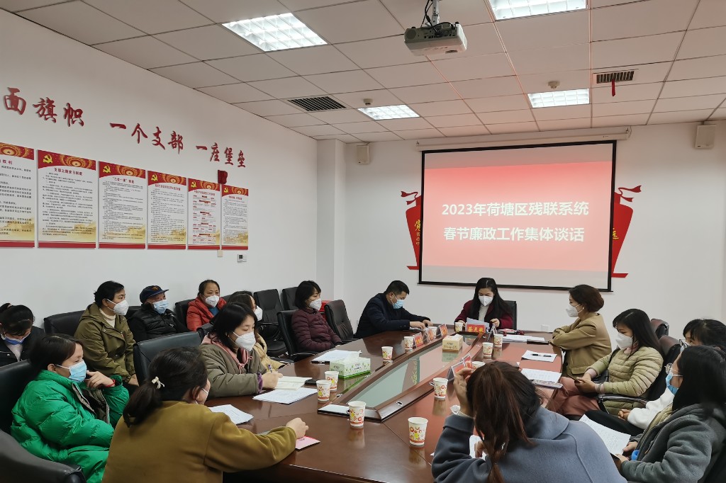 2023年春节将至,为深入贯彻执行中央八项规定精神,持之以恒纠治“四风”,确保节俭文明廉洁过节。1月12日,荷塘区残联系统组织开展2023年“春节”节前廉政工作集体谈话暨警示教育会。会议由区残联党组成员、副理事长彭文瑾主持,镇(街)残联理事长、助理员、区残联全体党员干部参加了会议。
