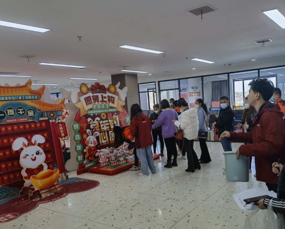 本次“福兔迎新春”活动为新就业形态劳动者精心策划了“抢凳子”、“兔如其来的圈套”、“一击即中”、“愿兔上钩”、“一掷千金投萝卜”等游戏,并为参加活动的新就业形态劳动者们准备了各类创意实用的奖品。游戏过程精彩激烈、欢声笑语、妙趣横生,活动现场气氛活跃,与祥和的节日气氛互相融合,为春节的到来增添了一份喜悦。