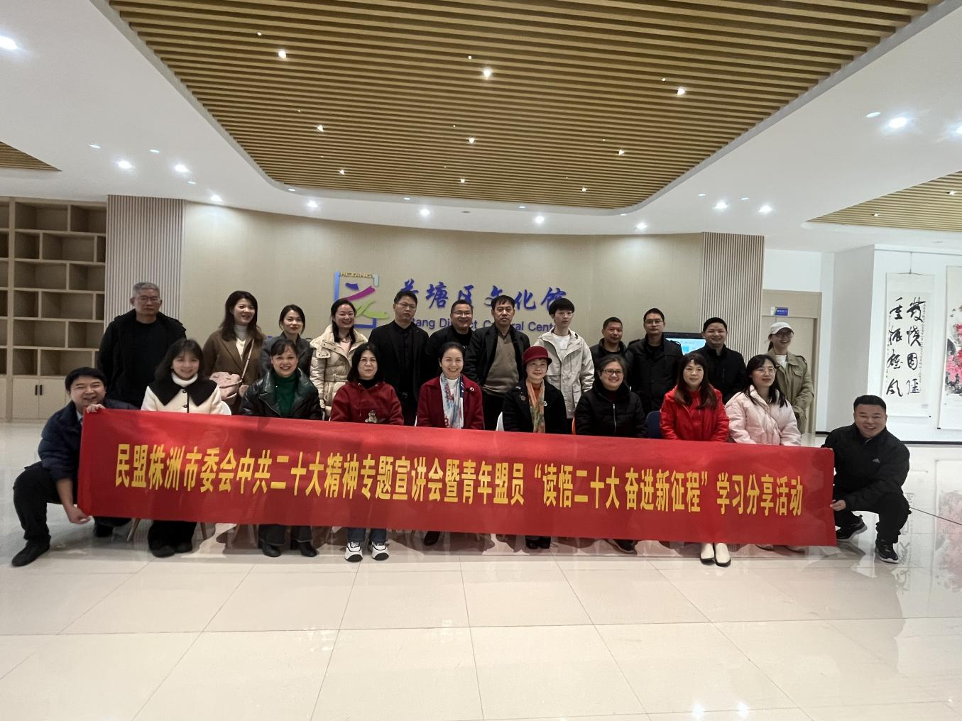 为动员全市青年盟员尽快把思想和行动统一到党的二十大精神上来,把力量凝聚到推动全市经济社会发展上来,1月13日,民盟株洲市委会中共二十大精神专题宣讲会暨青年盟员“读悟二十大 奋进新征程”学习分享活动在荷塘区文化馆、图书馆举办,此次活动由民盟荷塘区工委承办。民盟株洲市委会专职副主委刘娅娟出席活动,民盟株洲市委会机关干部、民盟荷塘区工委各基层组织班子成员及骨干盟员、民盟株洲市委会青委会委员参加活动,民盟荷塘区工委副主委、区文旅体局副局长李芳主持活动。