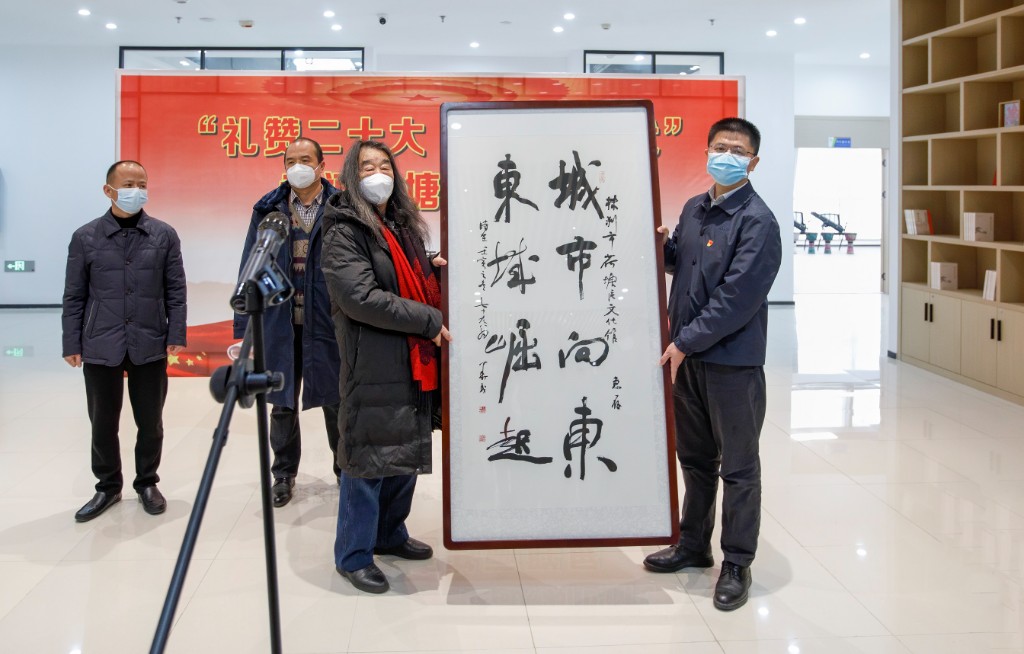 开幕式上,马学华宣布荷塘区“礼赞二十大 讴歌新时代”幸福荷塘书画联展开幕;丁华成向荷塘区文化馆赠送了书法作品《城市向东、东城崛起》,以文化之力助力荷塘区“一区两城”建设。