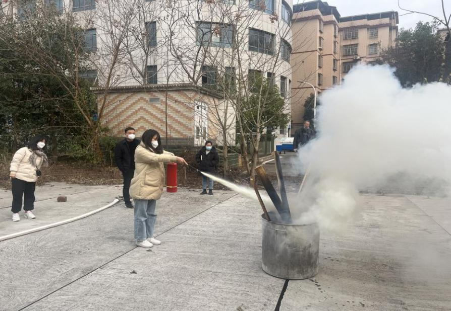 在区市场服务中心,听取了合泰、东湖地区服装加工厂消防安全治理工作介绍,参加了消防安全专题培训,并在户外开展消防安全实操演练。