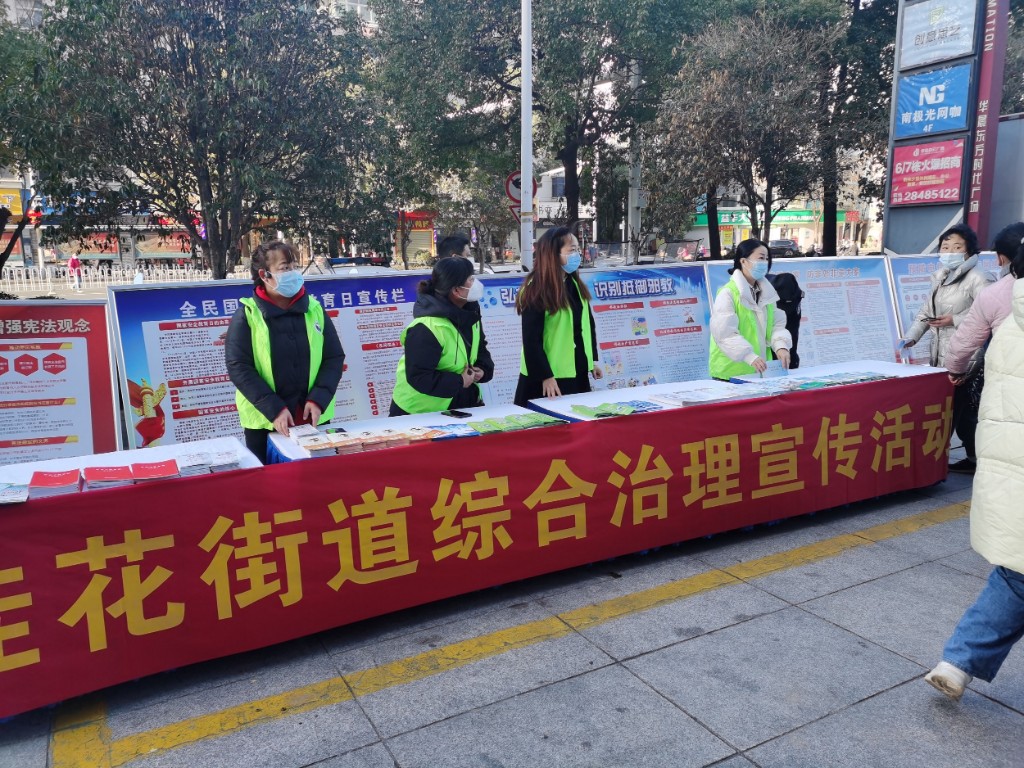 近年来,桂花街道注重综合治理和法制宣传工作,把宣传册子发到群众手中、送到群众家里,从大街小巷走进了企业和学校,2022年共开展平安建设宣传活动10余次。建立四级“矛调机制”,设置矛调工作室和矛调中心,做到小矛盾纠纷不出小区和社区,较大矛盾和信访问题不出街道,实行信访案件领导包案制度,2022年共协调解决100余起大小矛盾纠纷,化解6起多年来难以解决的信访积案。下一步,桂花街道将持续加大平安建设宣传力度,营造浓厚的平安建设宣传氛围,确保平安建设等各项工作取得实效。