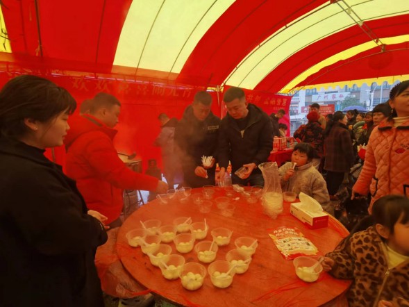 活动现场,人群中不时传出一阵阵开心的笑声,一碗碗热气腾腾汤圆送到了村民的手中,热腾腾的汤圆吃进肚子里,温暖了胃,更温暖了心。