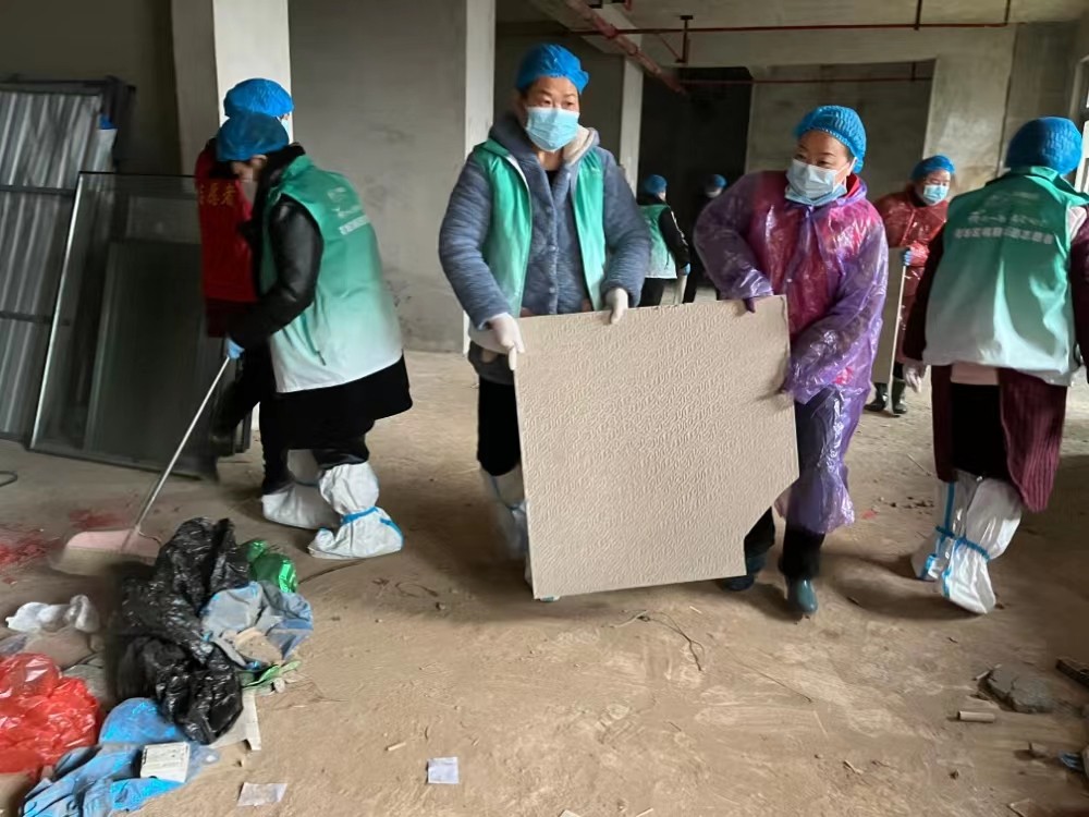 2月12日上午九点半,青塘社区“她空间”志愿者在社区和小区党支部的指导下,“她空间”志愿者队长黄微带领党员、志愿者姐妹20多人全副武装,开展腾房大清扫。有抬铁架、厚重的广告牌;有的搬废旧资料、有的拖地。经过3个小时的共同努力,200多平米新老年活动中心终于完成了初步清扫。