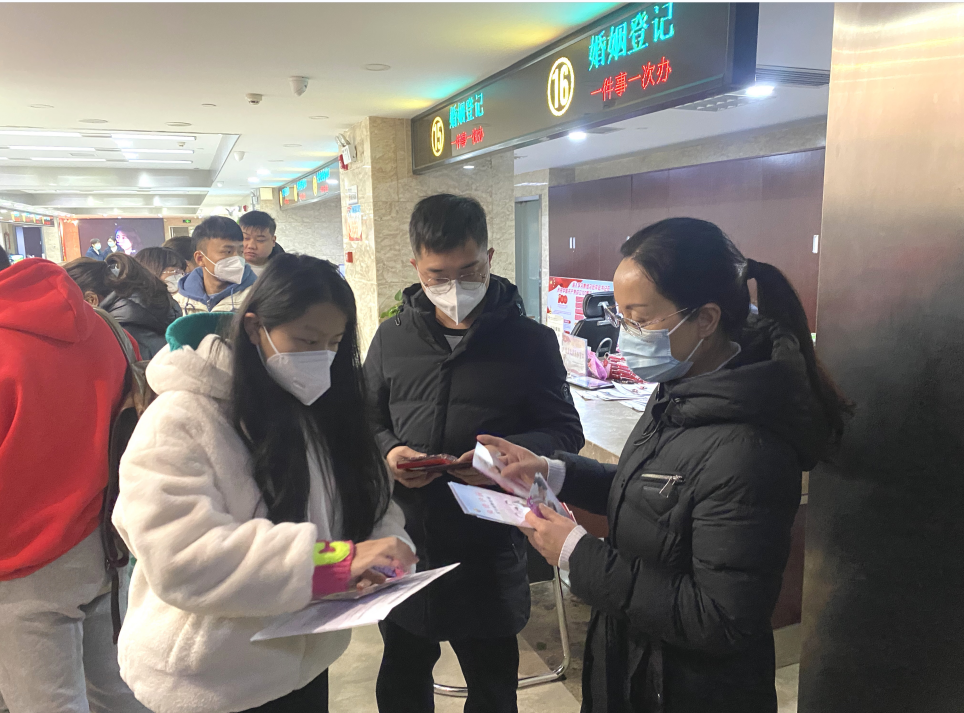 为传播新型婚育观念,营造生育友好社会环境,不断提高人口素质,2月14日情人节当天,宋家桥街道卫计办以婚姻登记特定日为契机组织辖区专干到区妇幼、区民政局开展“重视婚检孕检 孕育健康生命”的主题宣传活动。