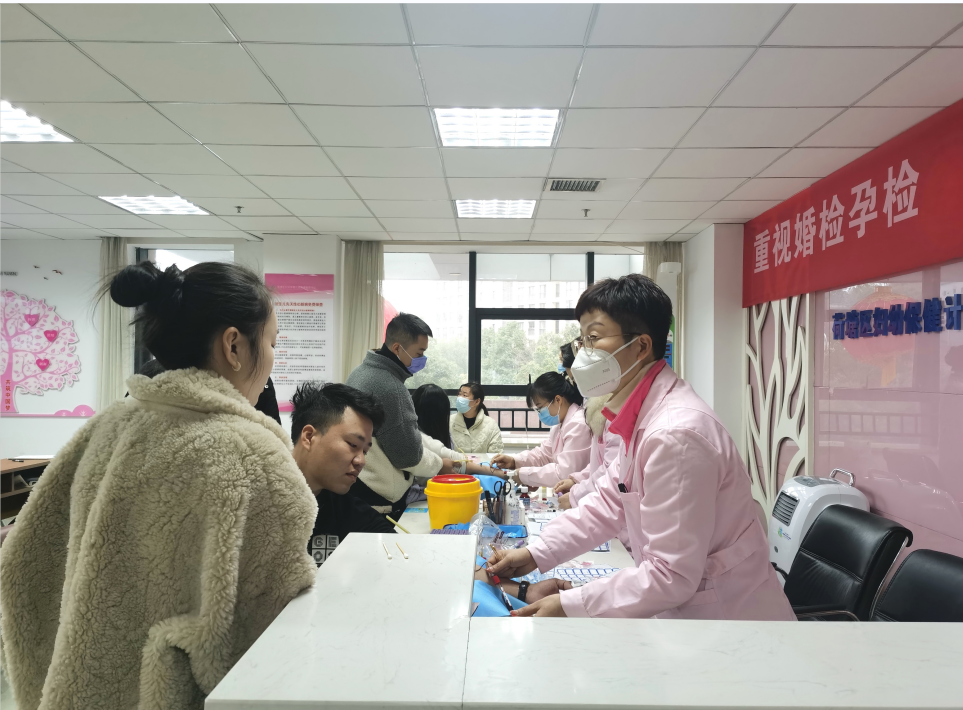 活动依托“婚登”“婚、孕检”的一条龙服务,妇幼专家现场提供优生优育咨询、免费婚检和孕前优生健康检查,工作人员为新婚夫妇发放《免费婚前检查、孕前优生健康检查》《 婚育新风 》等宣传折页共60余份,并为新人们送上新婚的祝福。
