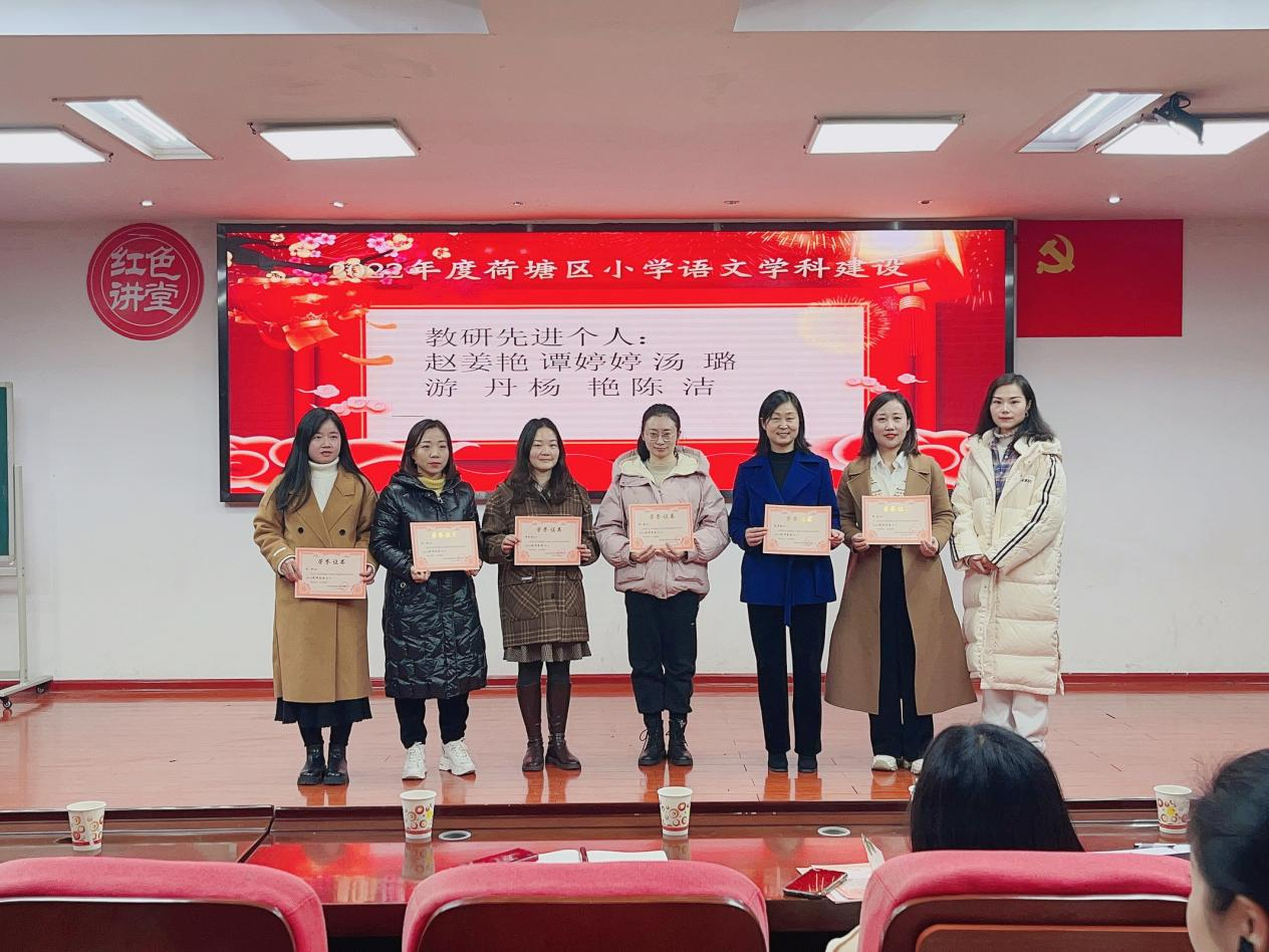 活动开始,唐小意对2022年荷塘区学科教研工作进行总结,肯定了各校教研组长和荷语骨干团队所作出的努力和取得的成绩,并现场为年度“教研先进个人”和“优秀教研组长”颁奖。