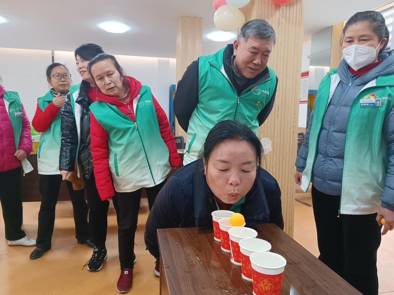 在文艺演出结束后,志愿者们通过吹气球、套圈、击鼓传花等小游戏开启了今日的快乐时光,同时也在互动游戏中拉近了彼此的距离。