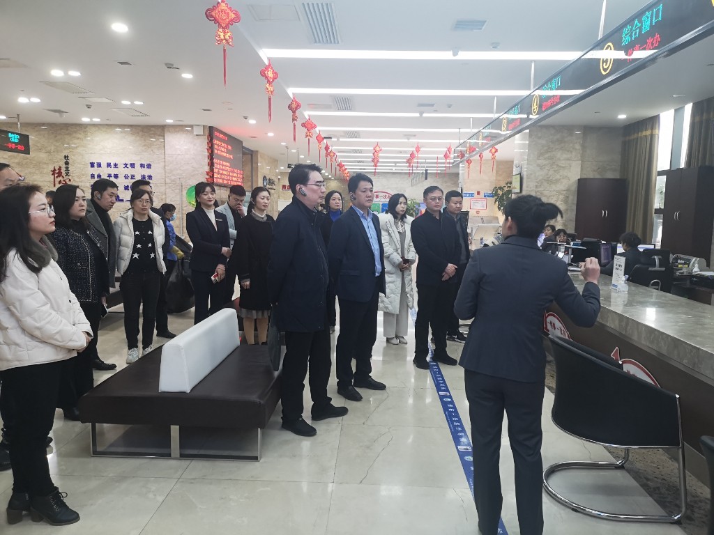 2月24日下午,由省医疗生育保险服务中心副主任周阳辉带领的省调研组一行5人,赴荷塘区政务中心实地调研综合柜员制运行情况。市医保局党组织成员、副局长胡宁,市医保事务中心副主任王皎琦,区政府副区长罗曼,区医疗保障局局长周文洁等陪同调研。