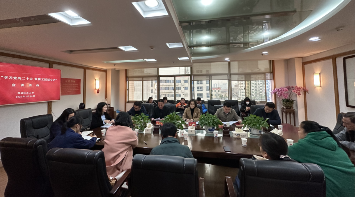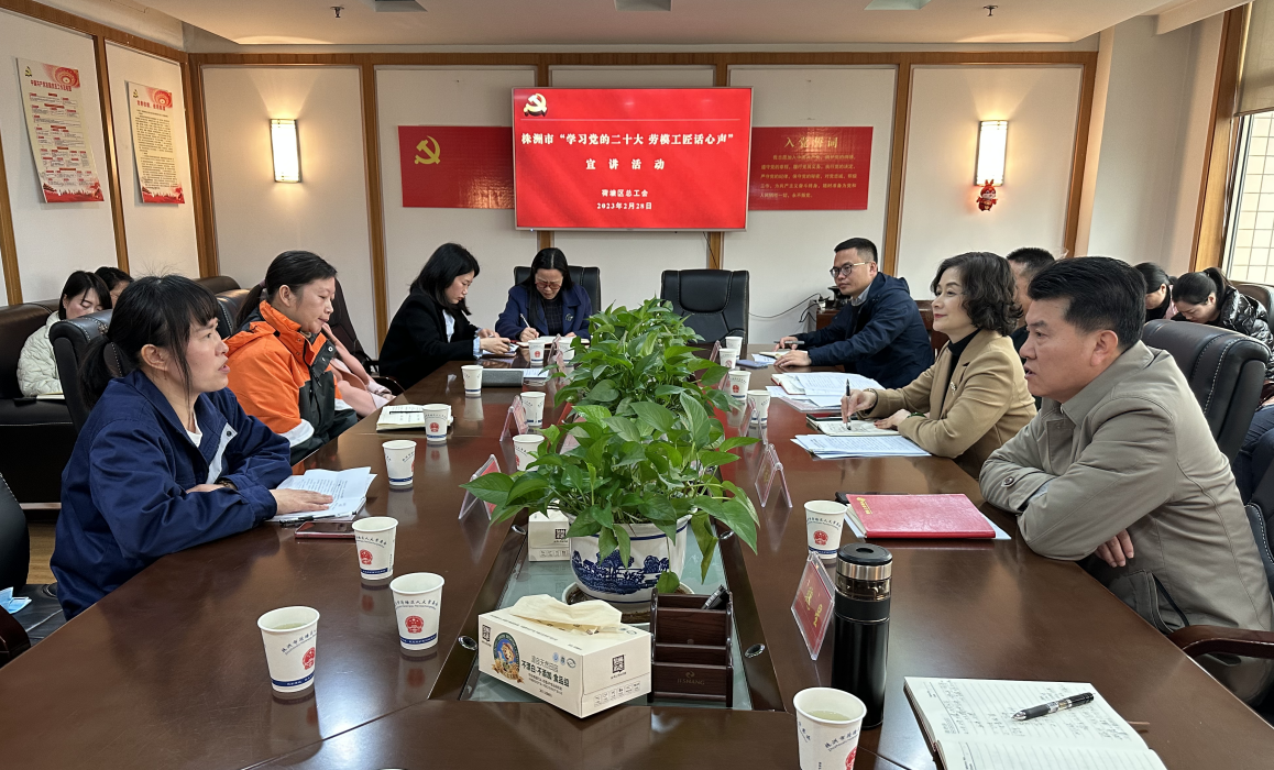 2月28日上午,株洲市总工会党组成员、副主席刘翡到荷塘区开展“学习党的二十大 劳动工匠话心声”宣讲活动,并与劳模、工匠、基层工会干部、一线职工等交流座谈。