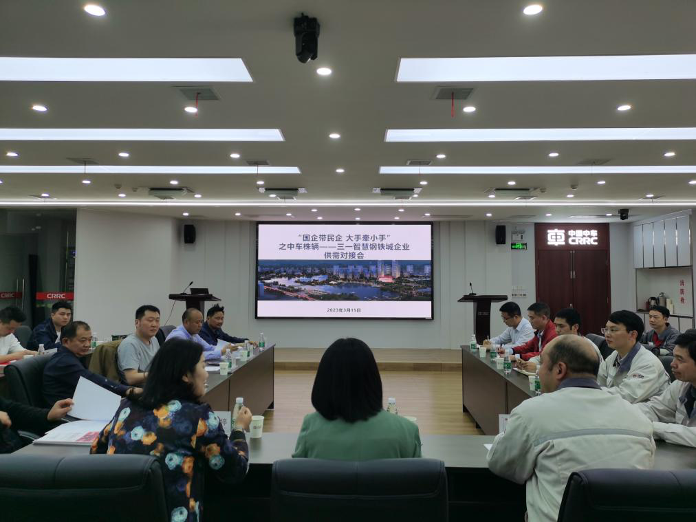 3月15日,荷塘区组织三一智慧钢铁城入驻企业在中车株洲车辆有限公司开展“国企带民企 大手牵小手”活动,帮助企业开拓本地市场。区产业服务中心主任陈霞霞,中车株洲车辆有限公司副总经理司九明、三一智慧钢铁城项目副总经理黄婷及入驻企业代表共计20余人参加。