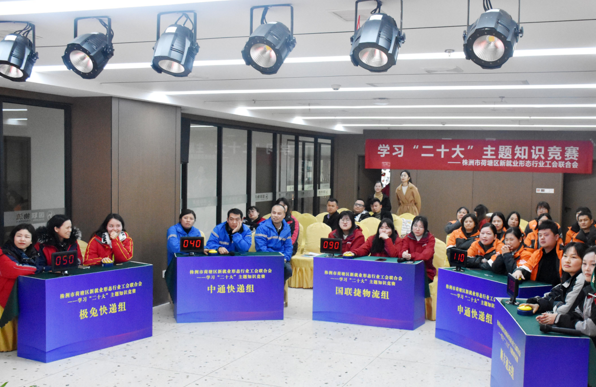 3月21日,荷塘区总工会在株洲市现代综合物流园多功能厅举办“学习党的二十大精神”主题知识竞赛活动。区总工会副主席、荷塘区新就业形态行业工会联合会主席何彦欣出席活动并致辞。国联捷物流、申通快递、中通快递、顺丰速运、极兔快递等公司组成5支新就业形态劳动者代表队共40余名选手参加活动。