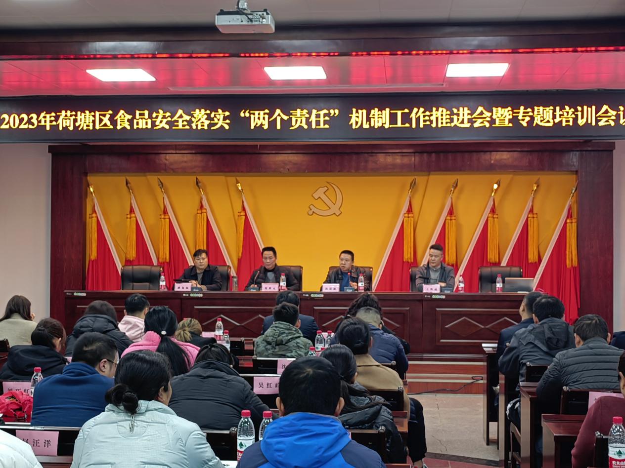 为进一步推动"两个责任"机制落细落实,确保C、D级包保干部熟悉使用"食安湖南"小程序,3月24日,荷塘区食品安全委员会办公室组织召开食品安全"两个责任"机制工作推进会暨专题培训会。此次会议有仙庾镇、各街道办事处分管负责人,各市场监管所所长,村(社区)食安专干参加会议。共计80余人。