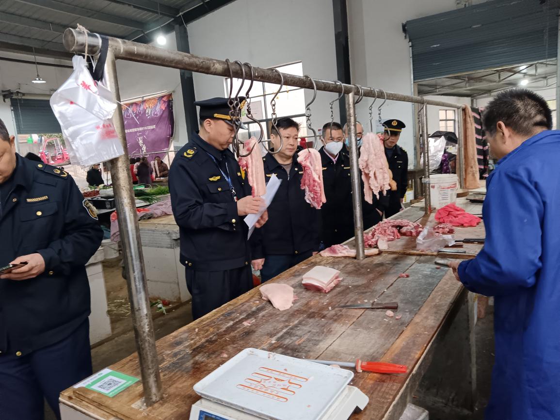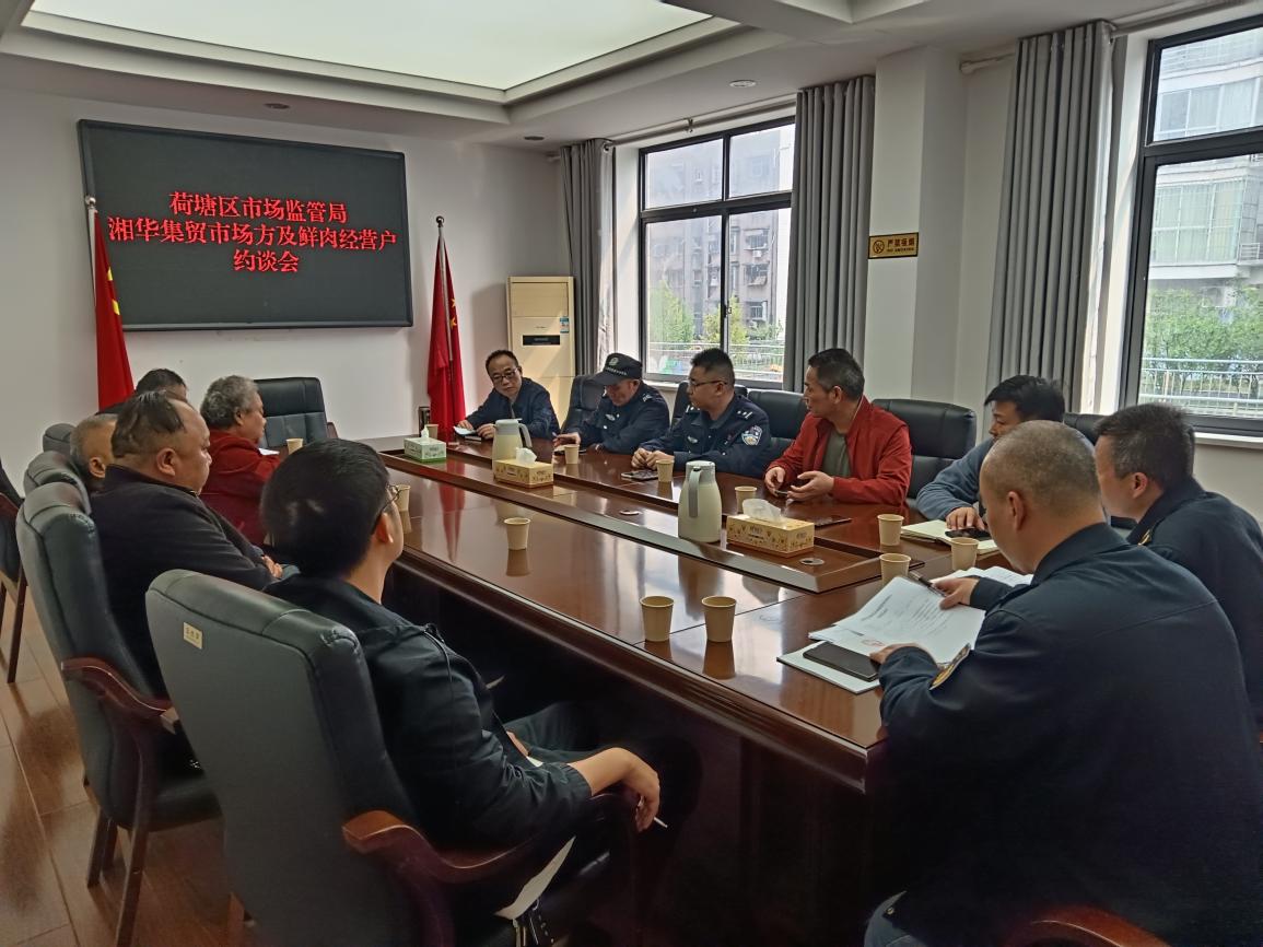 整治过程中,有群众反映湘华集贸市场存在销售"白板肉"的情况,区市场监管局积极联合区农业农村局、公安分局等部门开展执法行动。对市场内存在的问题依法下达了相关整改文书,对无法提供有效票据证明的经营主体进行了集中约谈,严格告知其违法行为的危害及后果,督促市场方立行立改、落实主体责任。