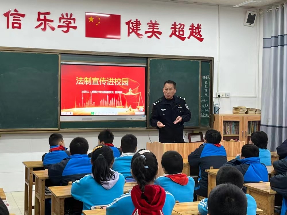 明照小学法制副校长彭鸿应正在给孩子们进行专题讲座