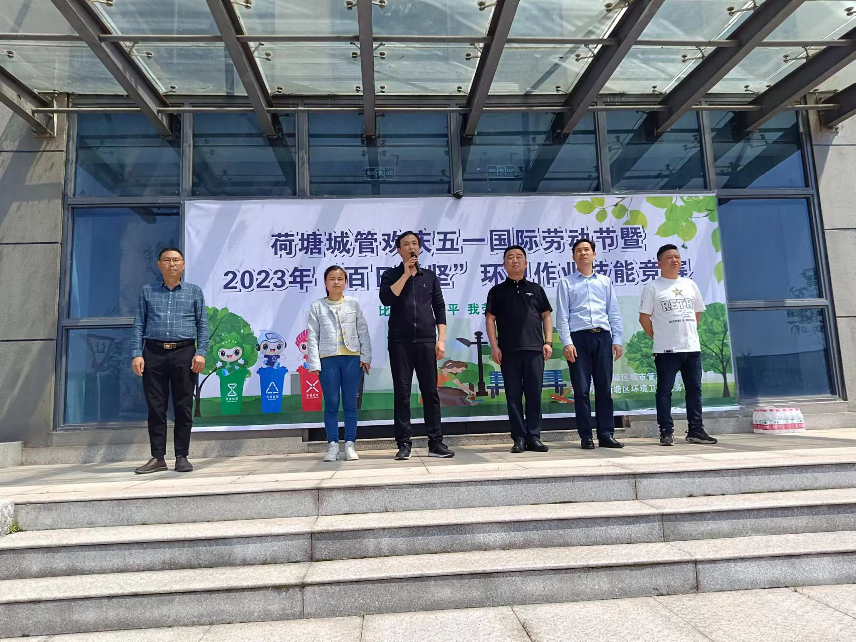 荷塘区城管局党委书记、局长谭洪勇宣布比赛开始,株洲市城管局市容环卫科科长贺军参加活动,荷塘区环境卫生服务中心主任谭前勇主持活动。