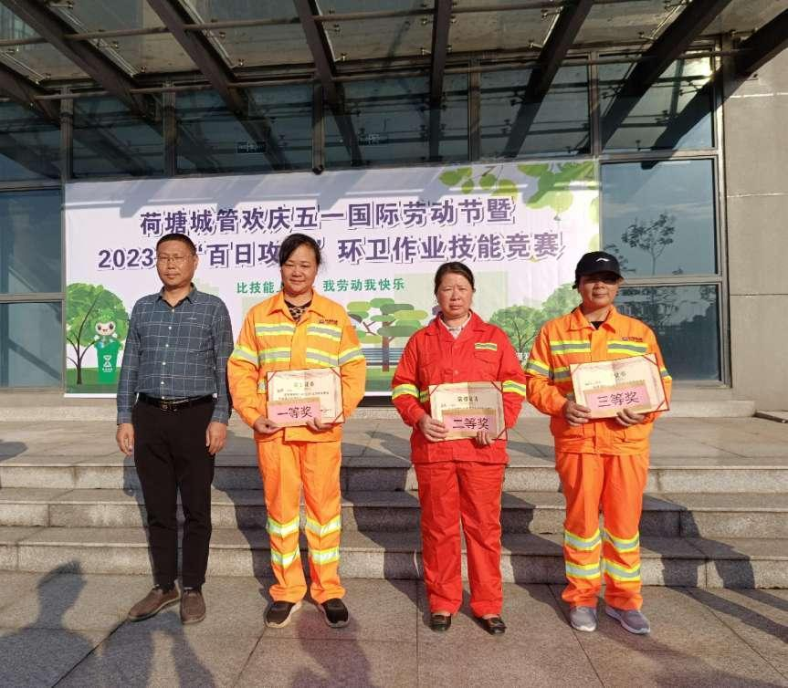 4月26日,荷塘城管欢庆“五一”国际劳动节暨2023年“百日攻坚”环卫作业技能竞赛举行,提高环卫技能,提升环卫品质,强化环卫作风,展示环卫形象,营造环卫工人“比学赶帮超”良好氛围,不断促进荷塘区环卫工作科学化、规范化、长效化、精细化水平,奋力打造整洁有序、和谐宜居的美丽新荷塘。本次竞赛由荷塘区城管局主办,荷塘区环境卫生服务中心承办。