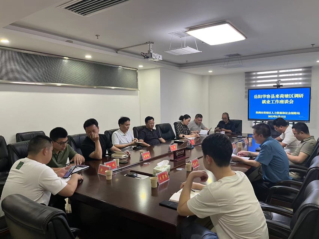 5月17日,岳阳市华容县人力资源和社会保障局党委书记、局长陈明一行8人来荷塘区考察交流公共就业服务、充分就业社区(村)建设、职业技能培训、就业专项资金管理使用、线上就业平台开发方面等工作,区人力资源和社会保障局党组书记、局长黄大平陪同考察。