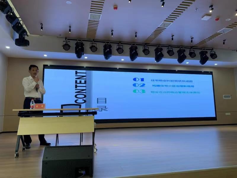 会上,湖南新森律师事务所律师的熊曙律师以《党建引领城市住宅小区的协同治理》为主题,围绕住宅物业纠纷现状及成因、构建住宅小区治理新格局和物业企业的物业管理主题责任等方面深入浅出地分享物管企业管理存在的法律知识。