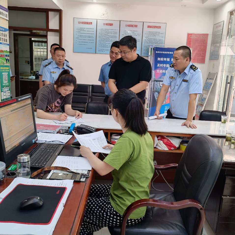 谢志军一行先实地走访月塘市场监管所,听取基层市场监管所日常工作等情况的介绍,并与相关负责人进行沟通交流。