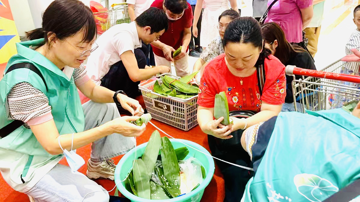 随着节奏欢快、鼓声有力的非洲鼓乐《好日子》正式拉开了浓情过端午的序幕。株洲市华润万家超市总经理郑希向广大居民致以端午节亲切的问候,并宣布包粽子比赛正式开始。一包一绕一捆,大家纷纷亮出看家本领,巧手翻飞,不一会儿,一个个大小不一、形状各异的粽子瞬间成型!看着一张张幸福的笑脸,感受到他们包的不仅仅是粽子,而是将节日的快乐、幸福、安康一同包进这香香糯糯的粽子里。