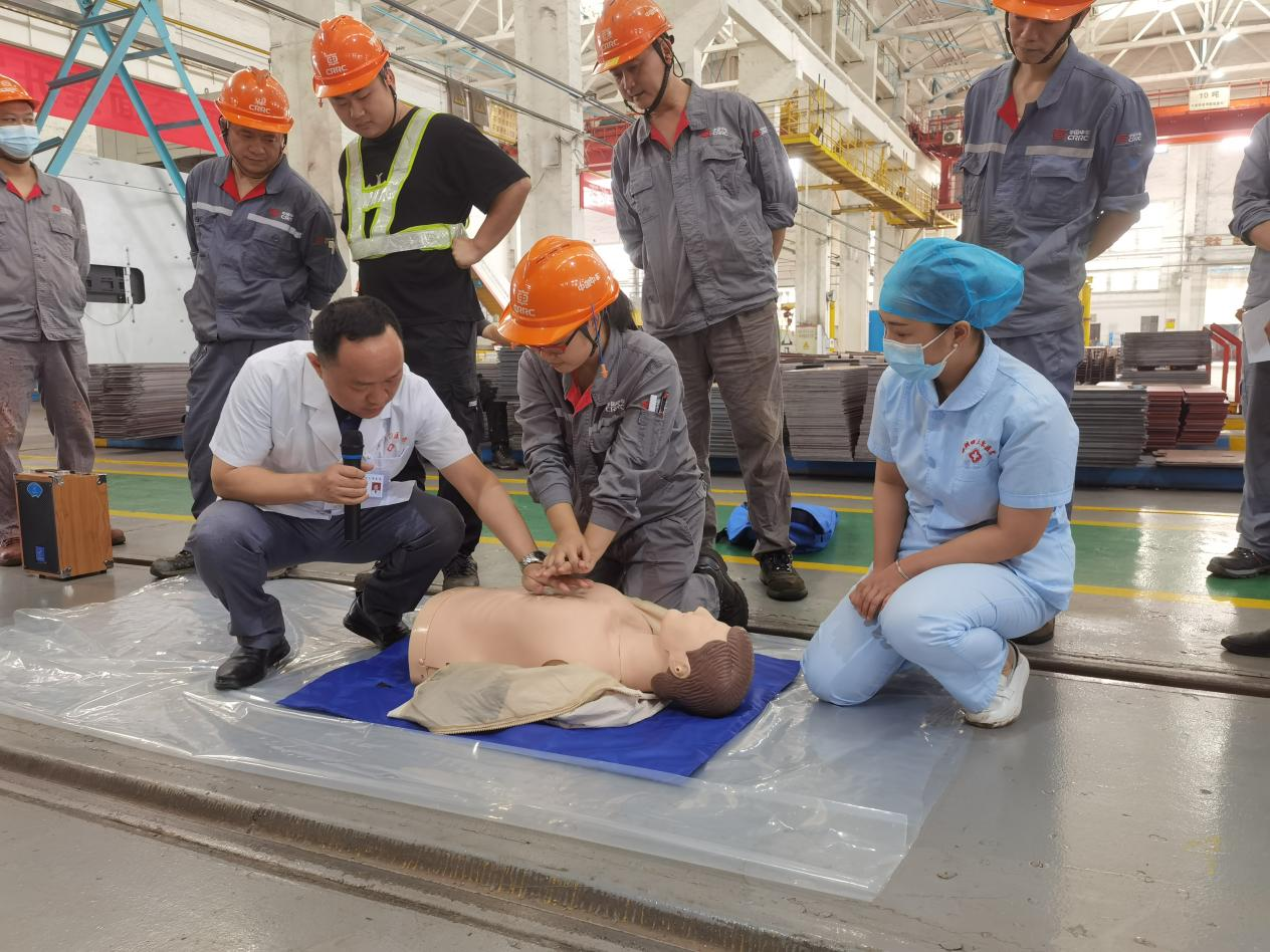 为增强广大职工安全防护意识,提高突发疾病时自救互救能力,应中车株洲车辆厂有限公司邀请,株洲四三零医院志愿服务队到工厂车间为一线工人、班组长、安全员培训急救知识和技能。